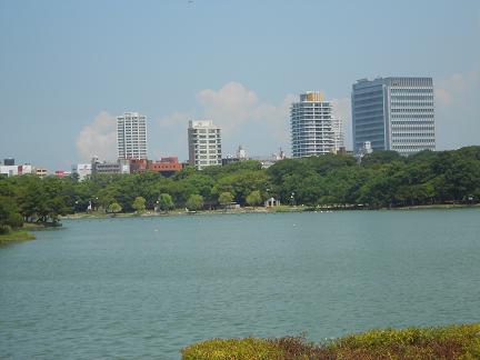 大濠公園を囲むように高級マンションが建ち並んでいます。